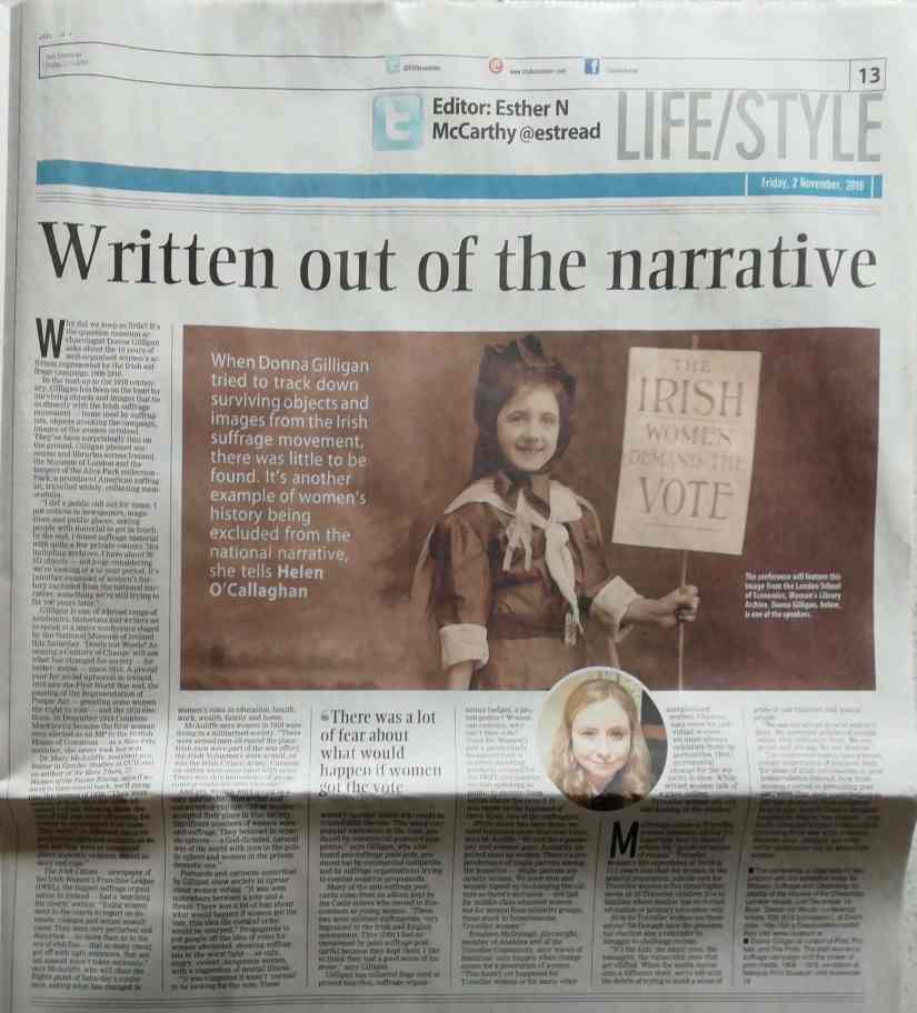 Organiser and convener of a free public academic seminar commemorating the first granting of the vote to women in Ireland, and the connection of the suffrage campaign to the use of print as a mass media for promotion of the movement. The project was supported by a successful grant from the European Year of Cultural Heritage 2018.
