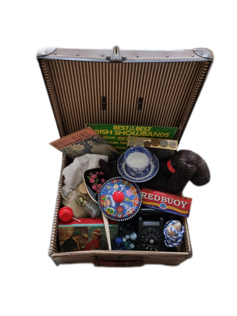 Creation of a bespoke Memory Box for loan and use by older age groups within the community. Memory Boxes encourage the handling of familiar antique and vintage objects, prompting discussion and a focus on the importance of reflection, recall and reminiscence. The Box was supported by Creative Ireland and Mayo County Council, and was launched during Positive Ageing Week 2023.