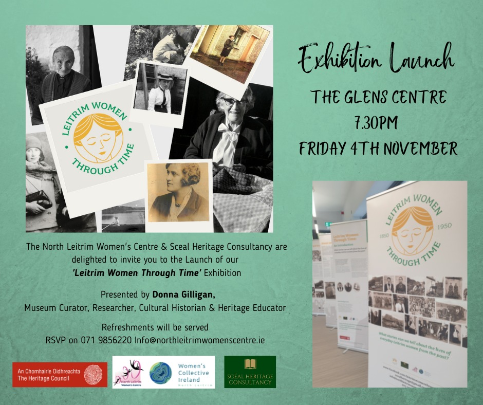 Scéal Heritage Consultancy and the North Leitrim Women’s Centre are delighted to announce the launch of “Leitrim Women Through Time: 1850 – 1950”, a new travelling museum exhibition telling stories of everyday Leitrim women from the past. The exhibition will be officially launched on Friday 4th November at 7.30pm in the Glens Centre, Manorhamilton, Co. Leitrim. All are welcome to attend on the night, and refreshments will be served.