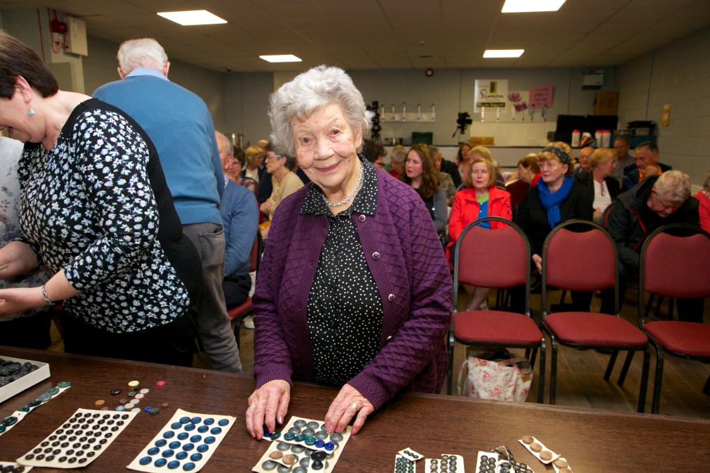 Women not working directly in the factory also carried out ‘piece work’ for it at home to earn extra money – by stitching the produced buttons onto display cards for shop sale. Our event featured a talk on the history of the factory by local historian Maureen Keaney, and was followed by many discussions and a craft workshop led by artist Mary Foley and featuring the use of original vintage buttons made in the Western Button Factory. It was wonderful to meet a number of the former factory workers, who shared their memories and experiences, and to view a large number of the original buttons made in the factory over its lifetime (1937 – 1972). People from the area raided their cupboards and button tins to bring out their small pieces of history for display and comparison!