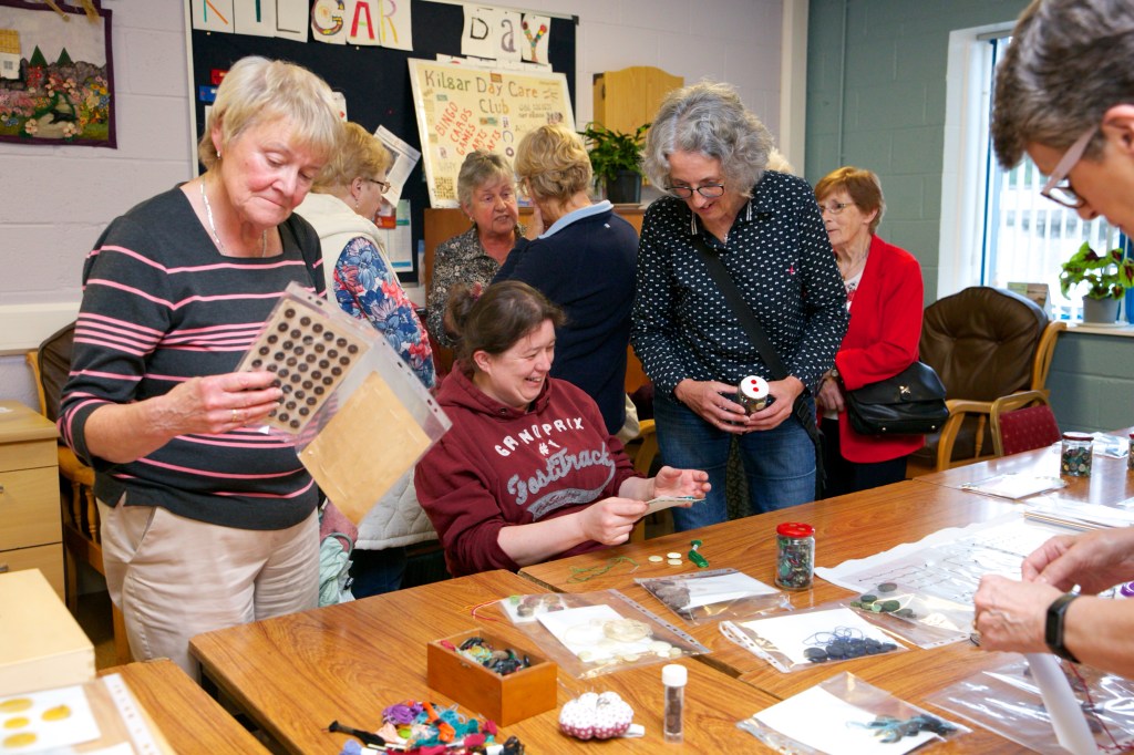 Our unique button craft workshop was inspired by the stitching patterns used by the women who took on the ‘piece work’ of stitching the buttons to card in their homes, and our participants put their own mark on the button stitching traditions used by these women. We hope to combine the pieces created on the night to make a future commemorative artistic piece to remember all of the women who worked in the factory over its lifetime.